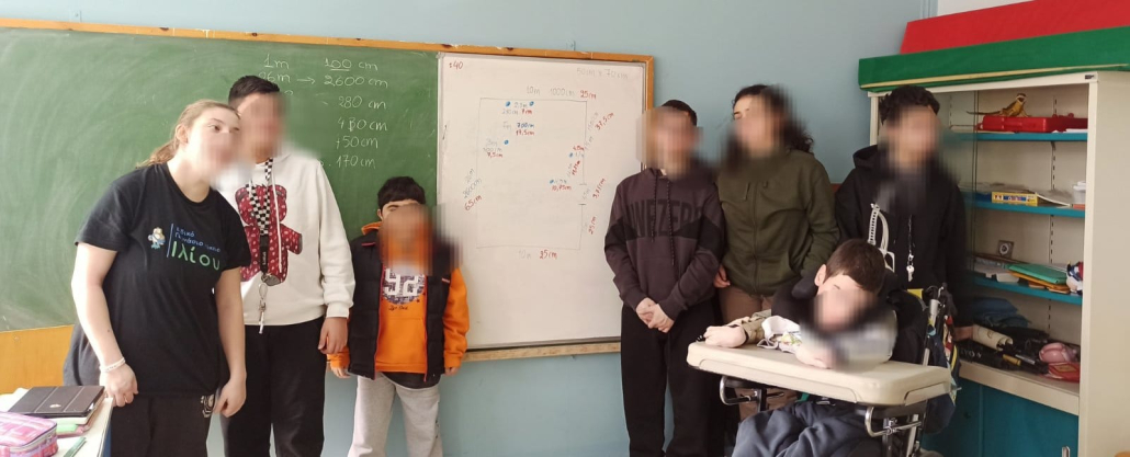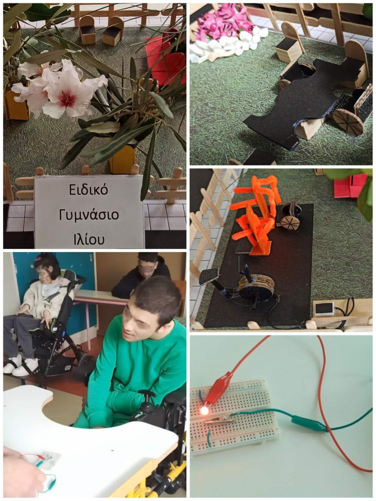 Στα πλαίσια του περιβαλλοντικού προγράμματος μείωσης του ανθρακικού αποτυπώματος του σχολείου, οι μαθητές του Α2 και του Α3 μέτρησαν τον υπαίθριο χώρο δίπλα στο σχολείο μας με μετροταινία, κράτησαν σημειώσεις και έφτιαξαν την κάτοψη με κλίμακα. Μετά από συζήτηση για την αξιοποίηση του υπαίθριου χώρου προχώρησαν στη δημιουργία μακέτας. Το σχέδιο περιλαμβάνει μια υπαίθρια τάξη και ένα υπαίθριο γυμναστήριο κατάλληλα διαμορφωμένο για τις ανάγκες όλων των μαθητών ανάμεσα από δέντρα και φυτά. Μελετήσαμε τον τρόπο με τον οποίο μπορούμε να χρησιμοποιήσουμε εναλλακτικές πηγές ενέργειας. Φτιάξαμε το αντίστοιχο κύκλωμα και πραγματοποιήσαμε δοκιμές χρησιμοποιώντας ηλεκτρογεννήτρια ή ηλιακό πάνελ προκειμένου να παράγουμε ηλεκτρική ενέργεια.