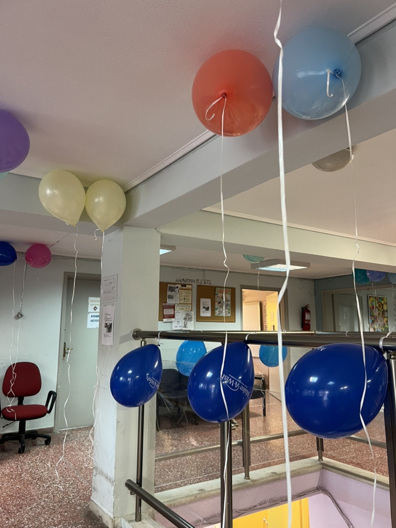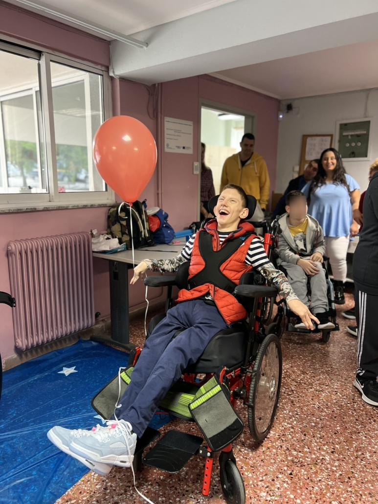 Η μέρα ήταν γεμάτη συγκίνηση, χαρά και αγάπη. Υπήρχαν δώρα, γλυκά, τούρτα, μουσική, τραγούδι, μπαλόνια και πολύ χορός! Οι μαθητές στόλισαν το νέο αμαξίδιο με κορδέλες και καρδιές ην γεμάτες αγάπη, ενώ τα μάτια όλων έλαμπαν από συγκίνηση.